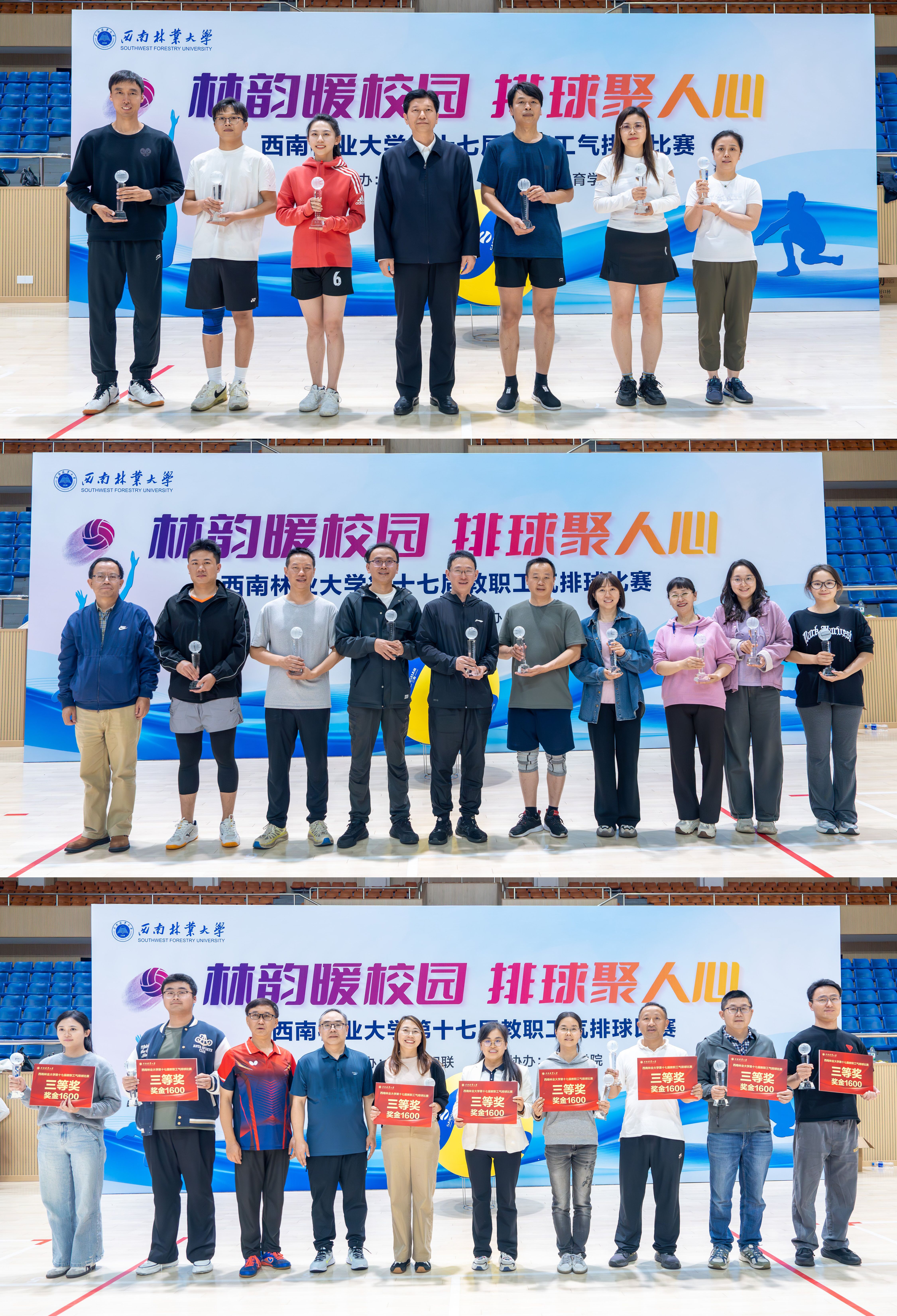 10月14日,西南林业大学第十七届教职工气排球比赛在体育馆圆满落幕。校党委书记李永勤、校党委副书记、工会主席魏宏、校纪委书记武红星、副校长杨思林出席颁奖仪式。