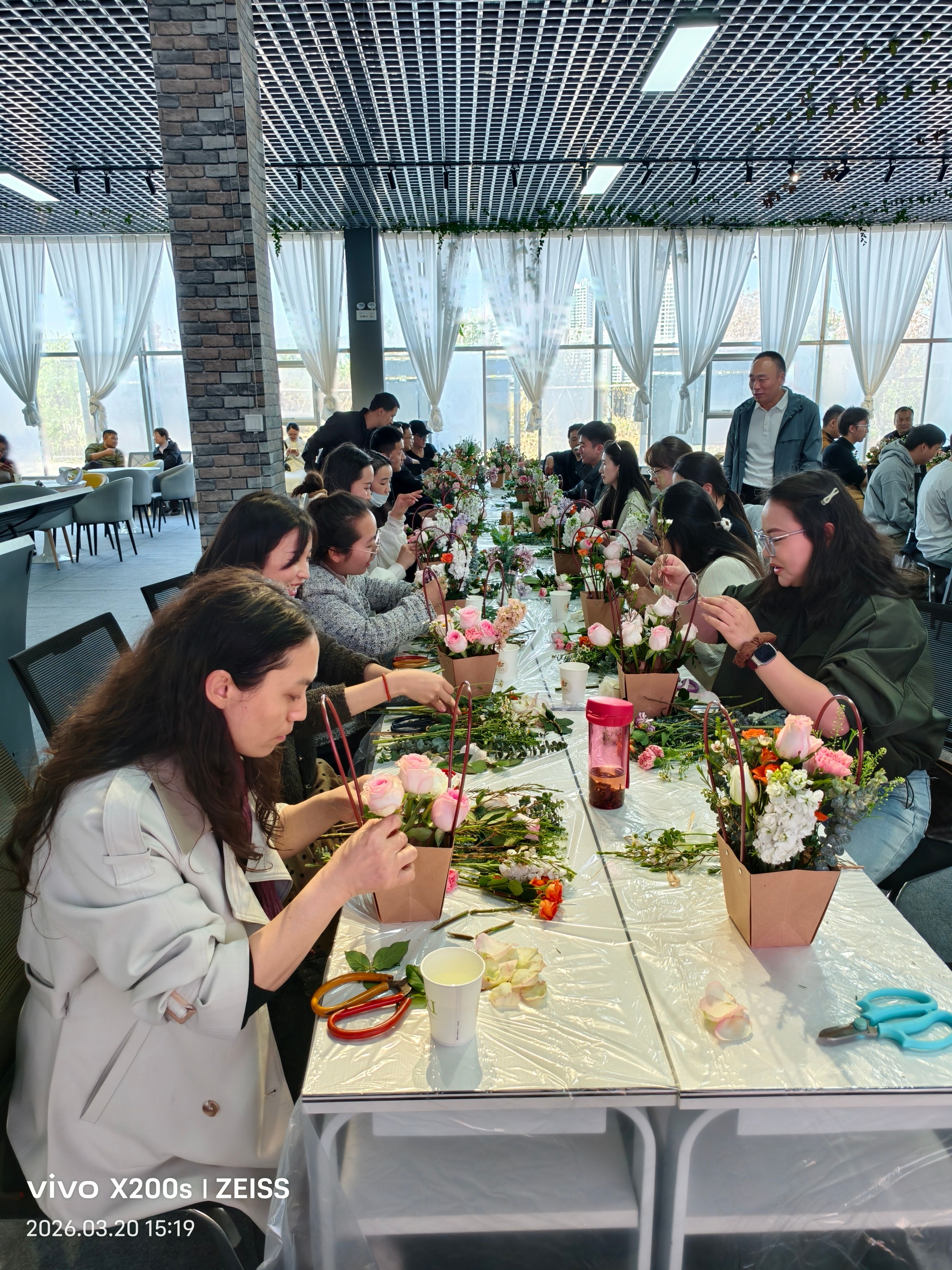 在插花主题实践活动环节,花艺师首先为大家讲解了花材选择、色彩搭配与造型技巧等基础知识。随后,会员们兴致勃勃地动手实践,精心挑选花枝,巧妙构思布局,将一朵朵鲜花错落有致地组合成独具匠心的花艺作品。大家一边交流插花心得,一边分享生活趣事,在欢声笑语中增进默契与情谊。现场花香四溢、气氛温馨热烈,一件件精美的花艺作品也寄托着大家对美好生活的热爱与向往。